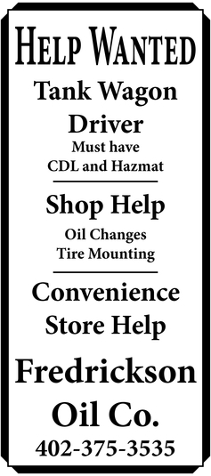 Sep 06, 2021. Fredrickson Oil Co Jobs Ads from The Wayne Herald