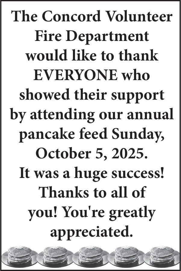 Oct 07, 2025. Concord Volunteer Fire Dept Events Ads from The Wayne Herald