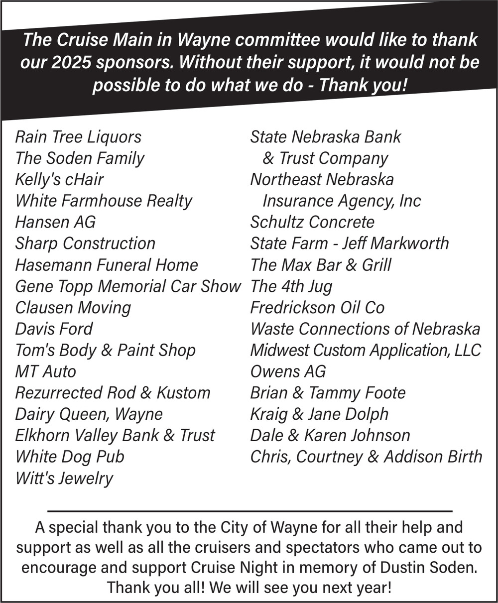 The Cruise Main in Wayne Committee Would Like to Thank Our 2025 Sponsors
