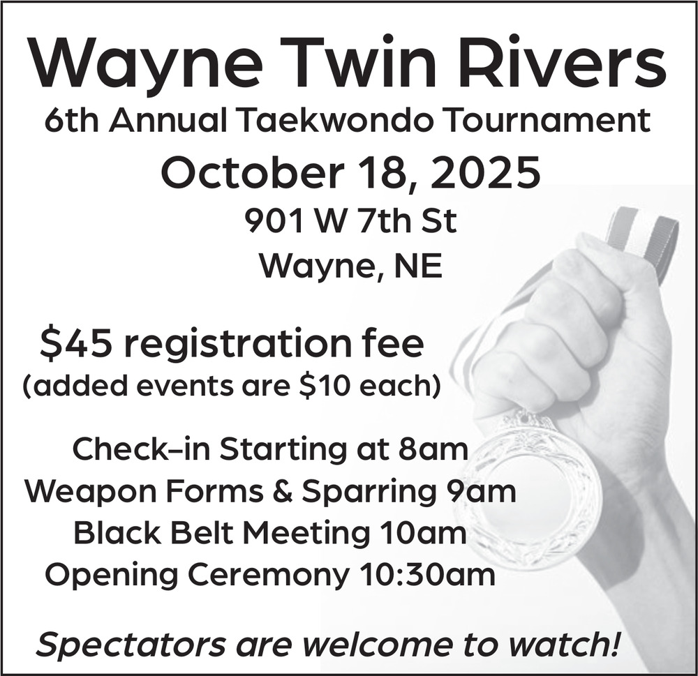 Oct 14, 2025. Wayne Twin Rivers 6th Annual Taekwondo Tournament Events Ads from The Wayne Herald