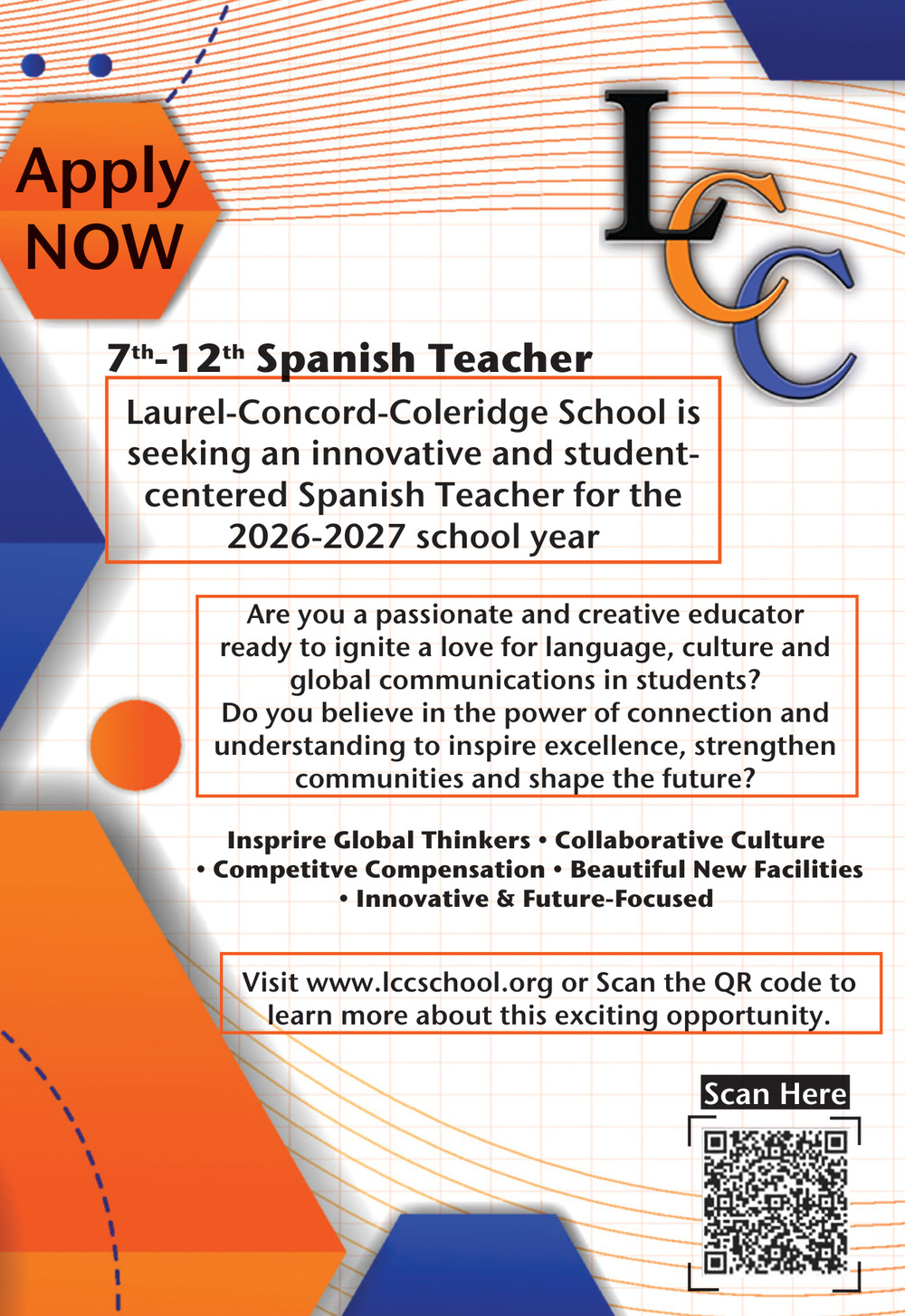Oct 22, 2025. Laurel-Concord-Coleridge School Jobs Ads from The Wayne Herald