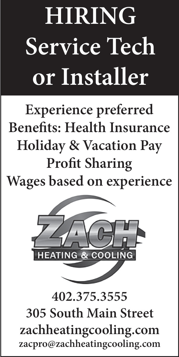 Nov 06, 2025. Zach Heating & Cooling Jobs Ads from The Wayne Herald