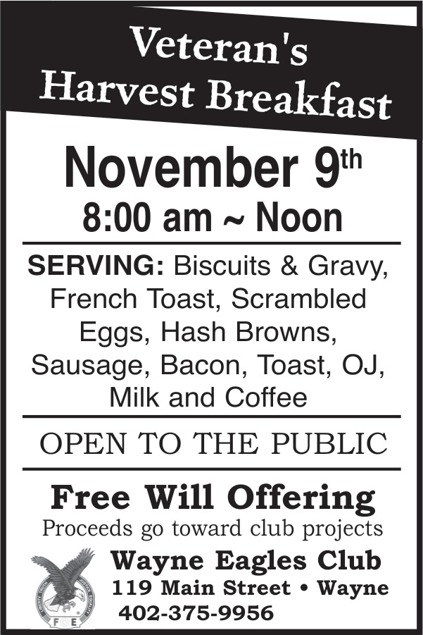 Nov 04, 2025. Wayne Eagles Club Events Ads from The Wayne Herald