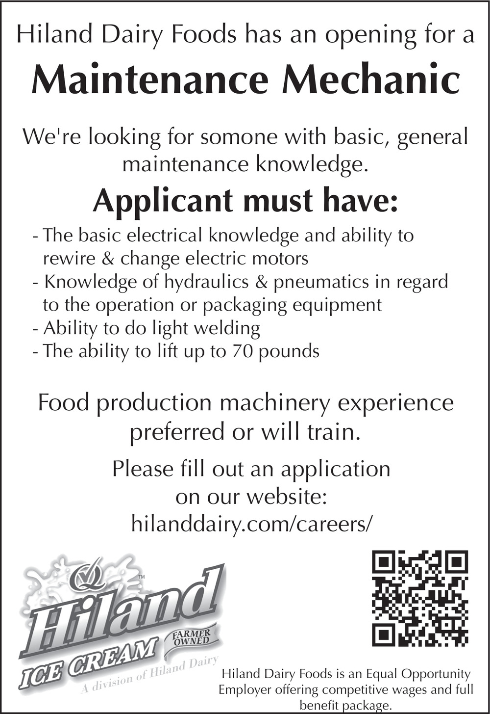 Nov 18, 2025. Hiland Dairy Foods Jobs Ads from The Wayne Herald