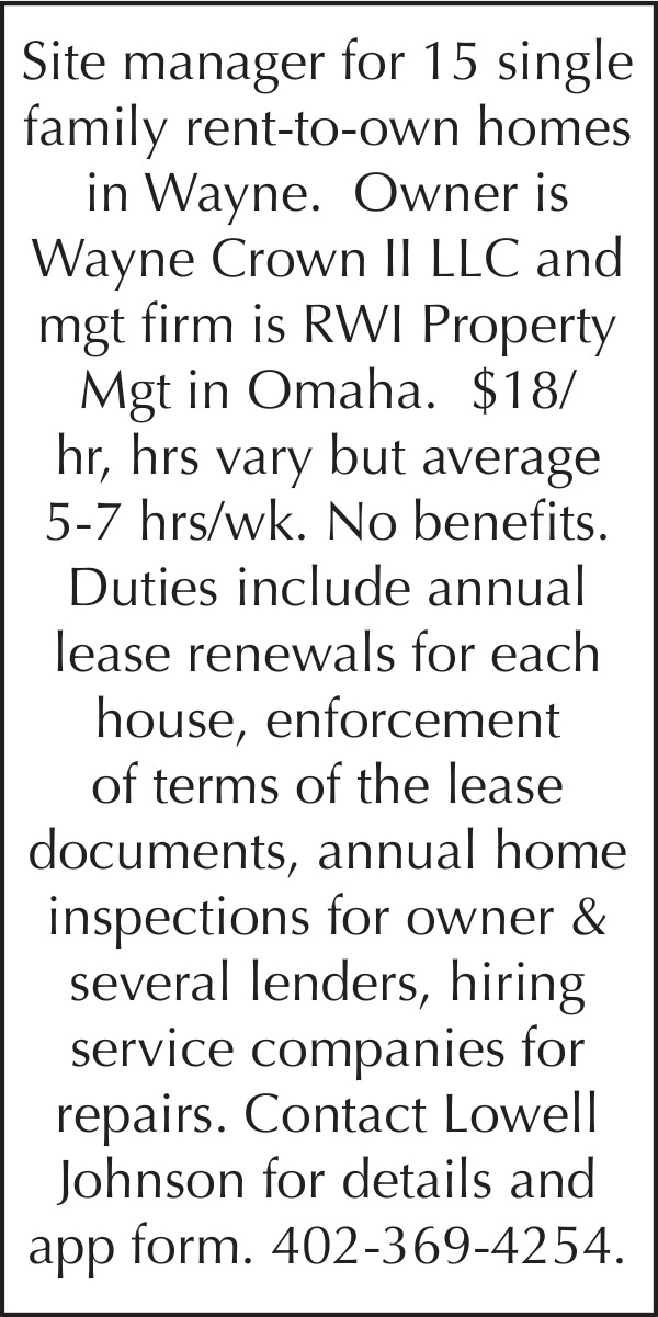 Dec 02, 2025. Wayne Crown II LLC Jobs Ads from The Wayne Herald