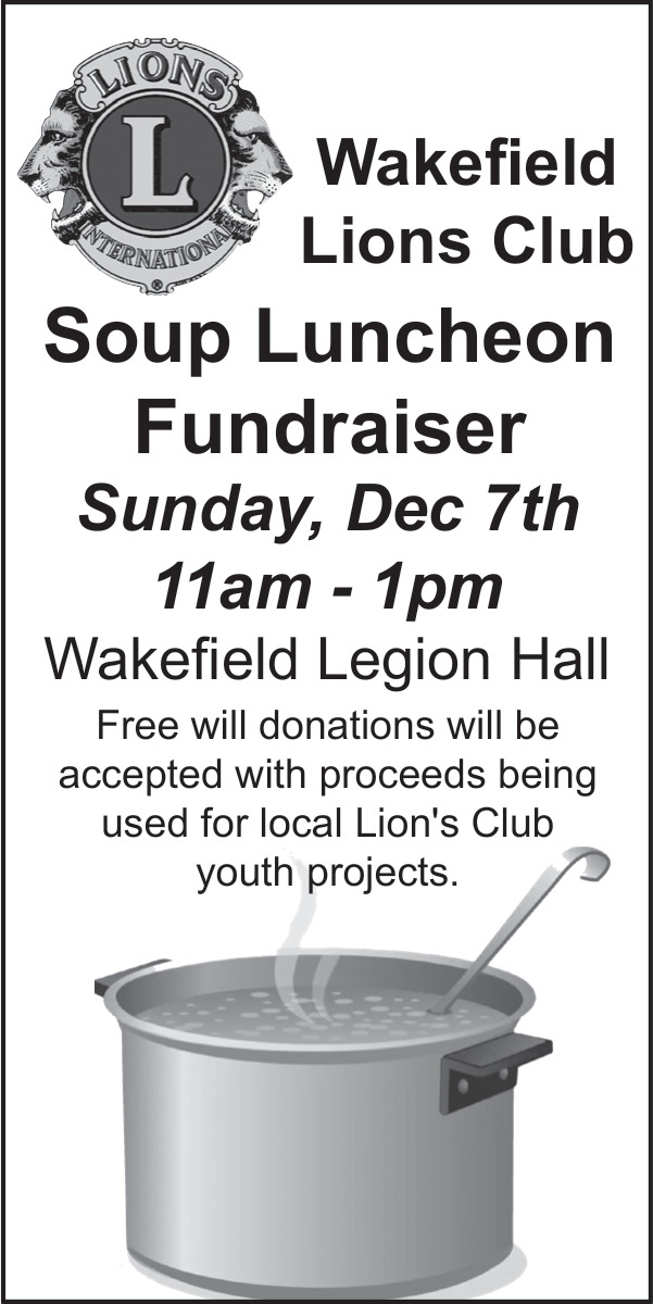 Dec 02, 2025. Soup Luncheon Fundraiser - Wakefield Lions Club (December 7th, 2025) Events Ads from The Wayne Herald