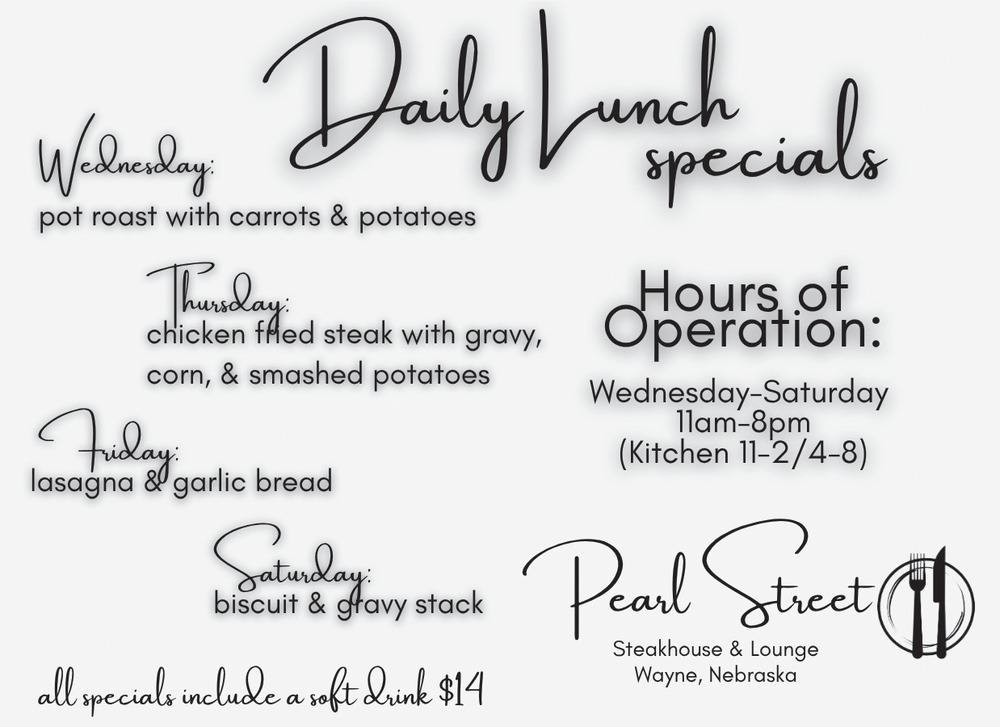 Dec 09, 2025. Pearl Street Steakhouse & Lounge Restaurants Ads from The Wayne Herald