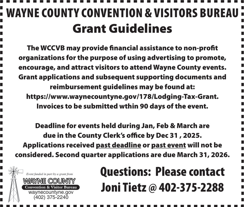 Dec 09, 2025. Wayne County Convention & Visitors Bureau Events Ads from The Wayne Herald