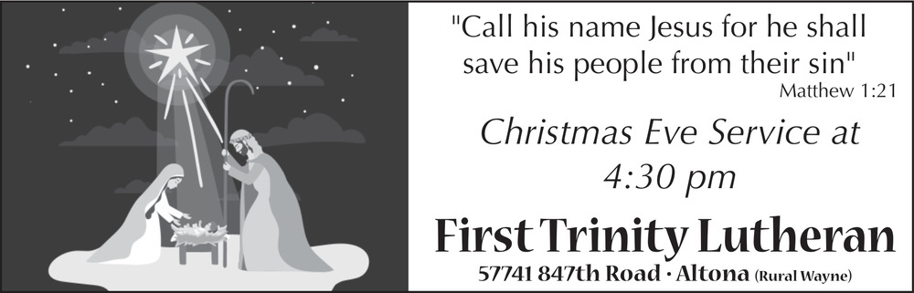 Dec 23, 2025. First Trinity Lutheran Church Church Ads from The Wayne Herald
