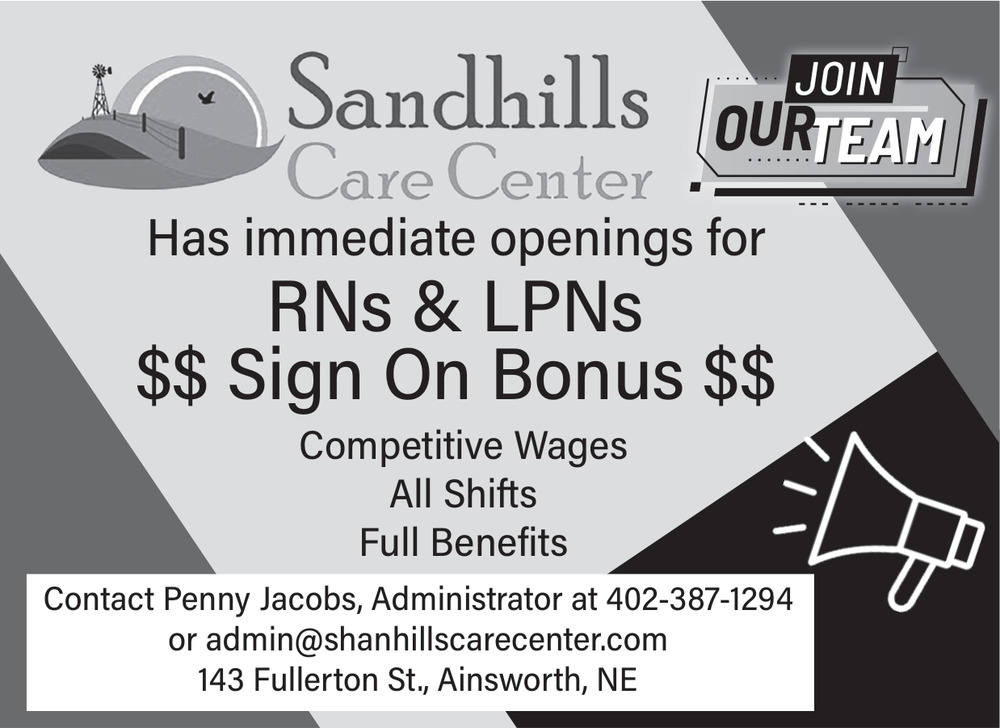 Jan 06, 2026. Sandhills Care Center Jobs Ads from The Wayne Herald