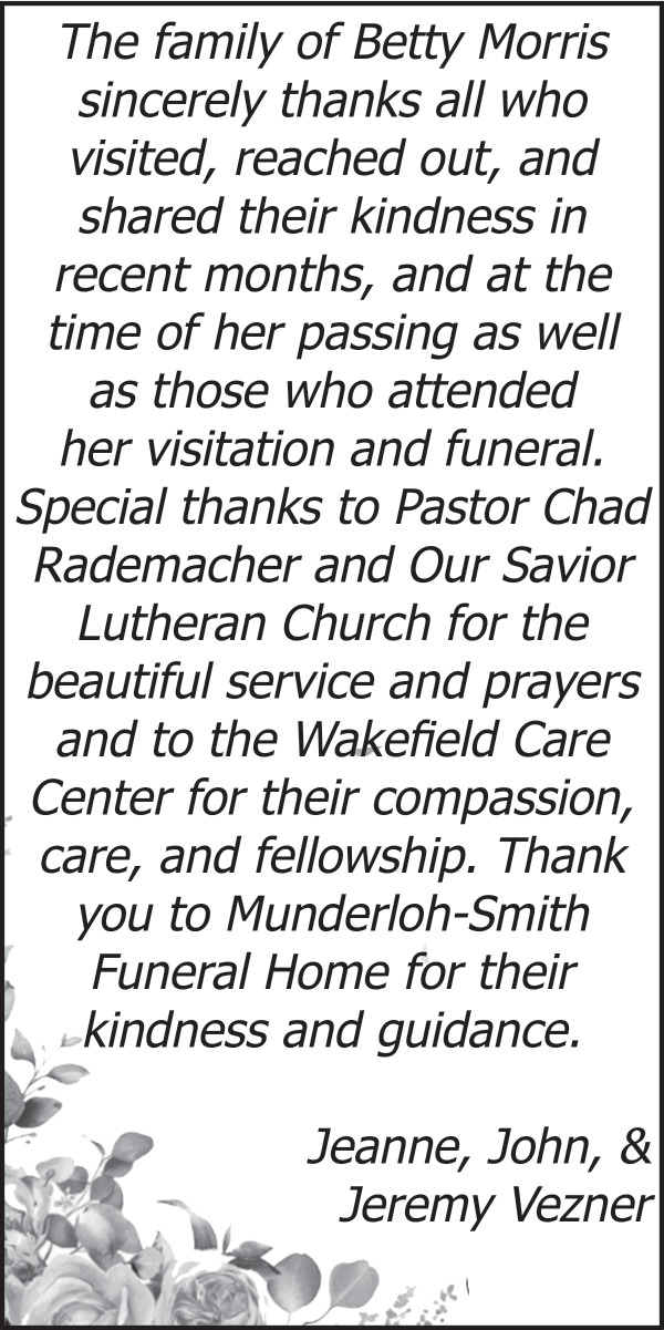Jan 20, 2026. Family of Betty Morris Misc Ads from The Wayne Herald