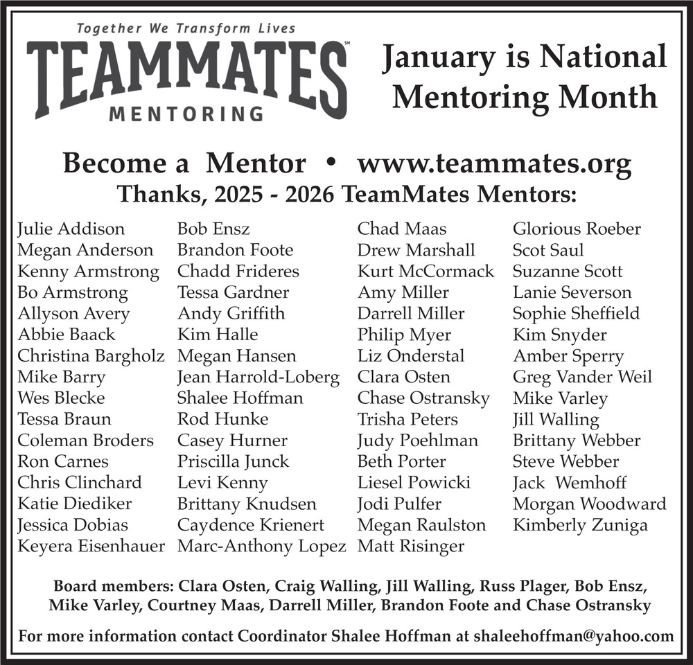 Jan 20, 2026. Teammates Mentoring Mentoring Ads from The Wayne Herald