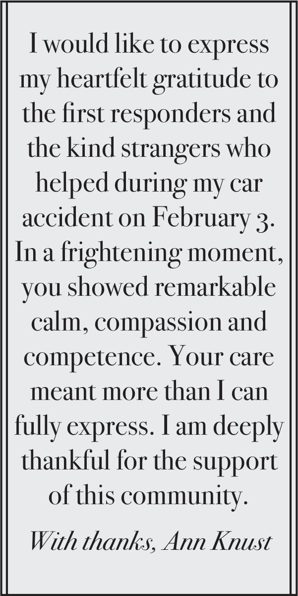 I Would Like to Express my Heartfelt Gratitude to the First Responders and the Kind Strangers Who Helped During My Car Accident on February 3