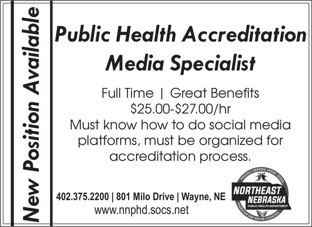 Ads for Northeast Nebraska Public Health Department in Wayne, NE