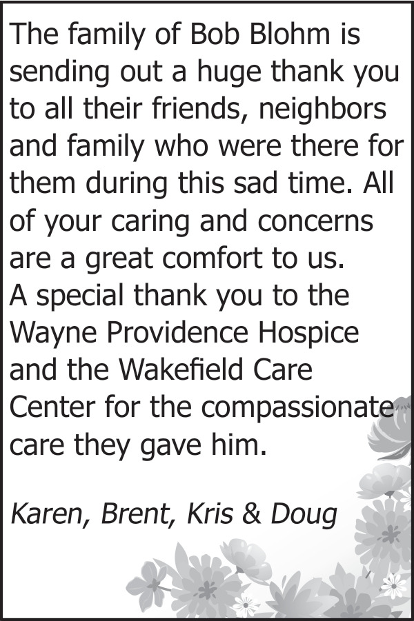 Feb 25, 2026. Bob Blohm Obituaries Ads from The Wayne Herald