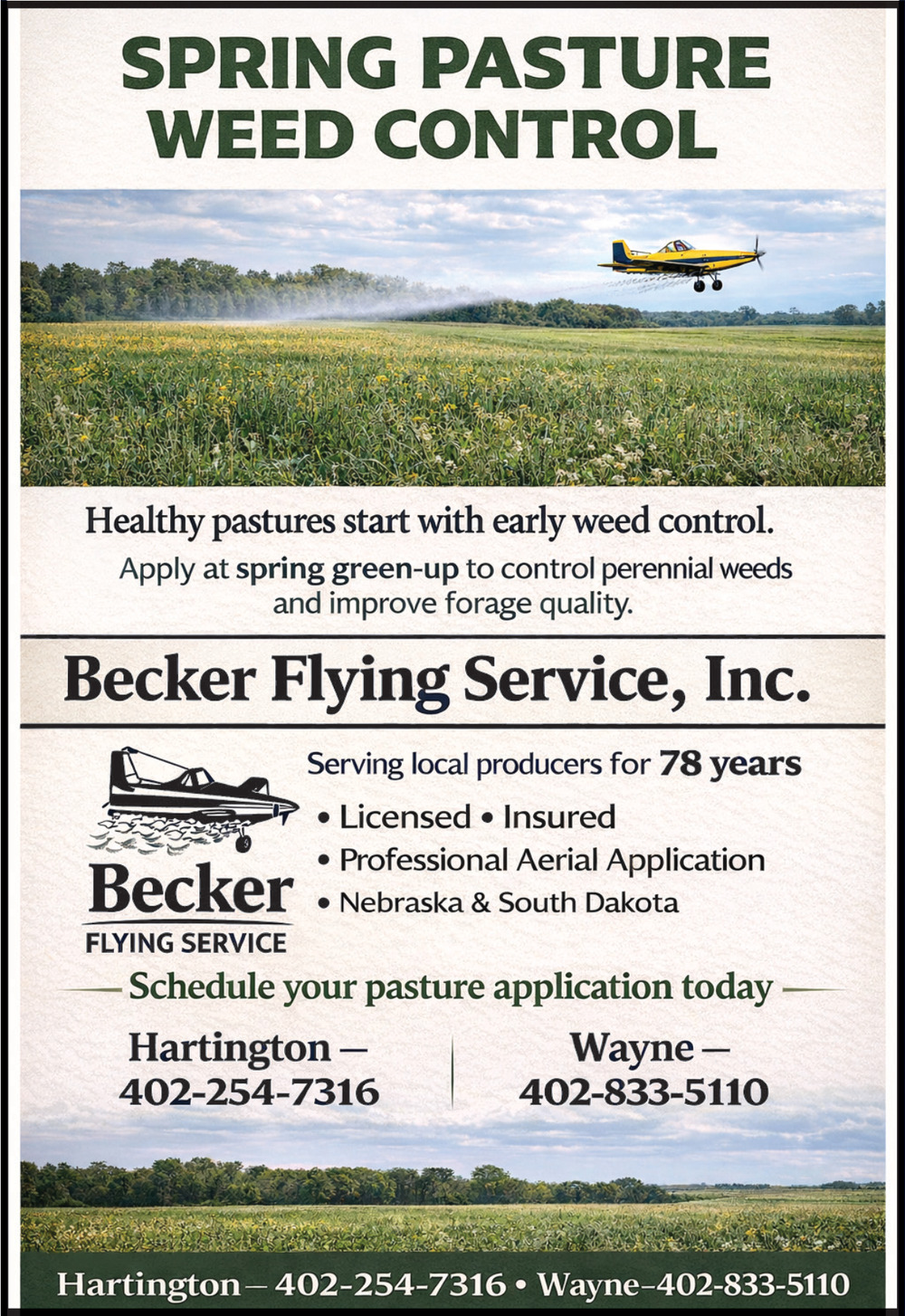 Ads for Becker Flying Service, Inc in Hartington, NE