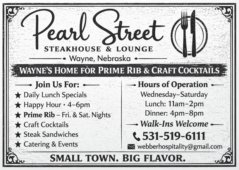 Mar 31, 2026. Pearl Street Steakhouse & Lounge Restaurants Ads from The Wayne Herald