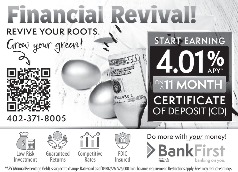Apr 07, 2026. Bank First Banking Ads from The Wayne Herald