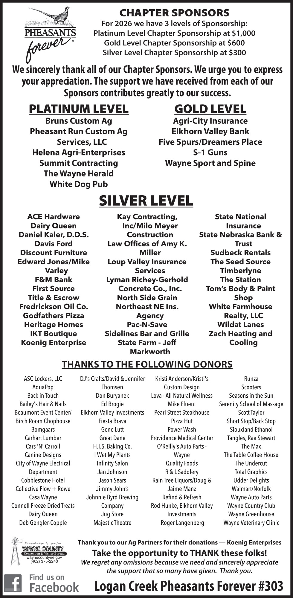 Ads for Logan Creek Pheasants Forever in Wayne, NE
