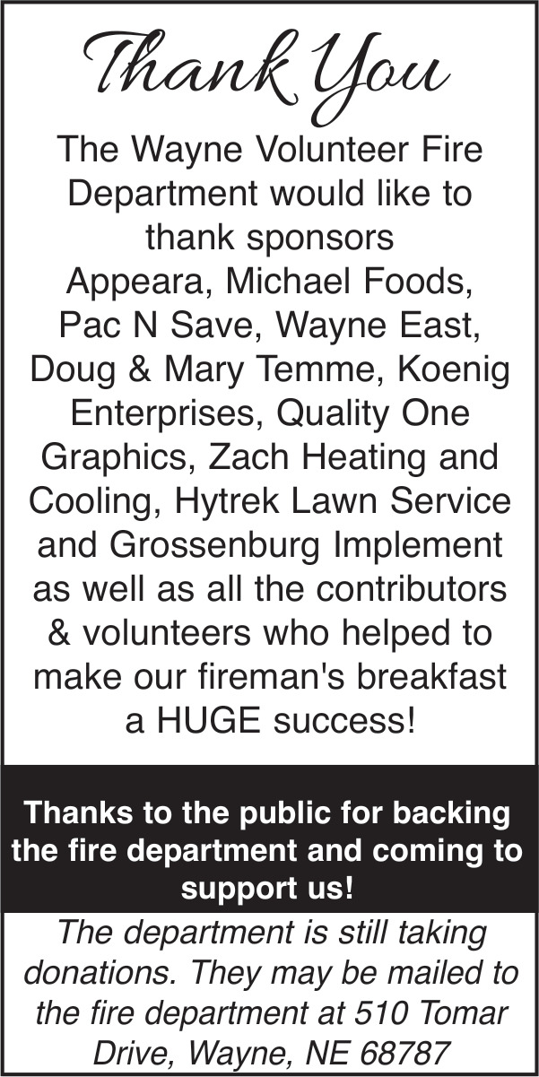Ads for Wayne Volunteer Fire Department in Wayne, NE